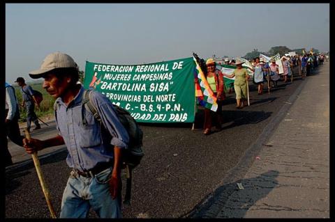 Marcha de Movimientos Sociales, campesinos, obreros, a Santa Cruz en defensa de la democracia, Bolivia septiembre 2008